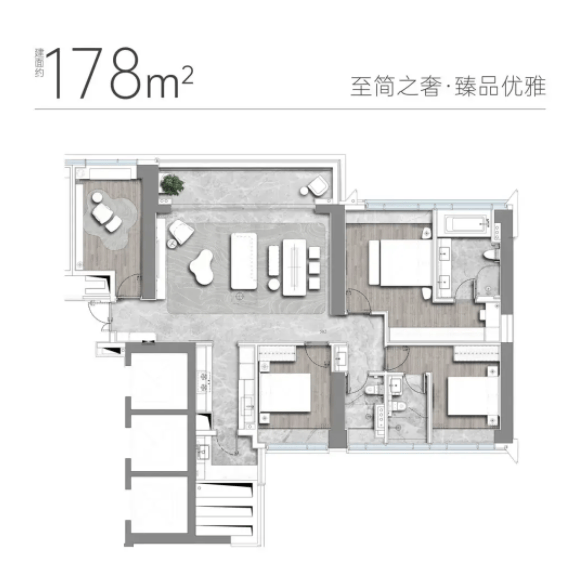 3栋(45层)剩余178㎡四室两厅两卫在售。