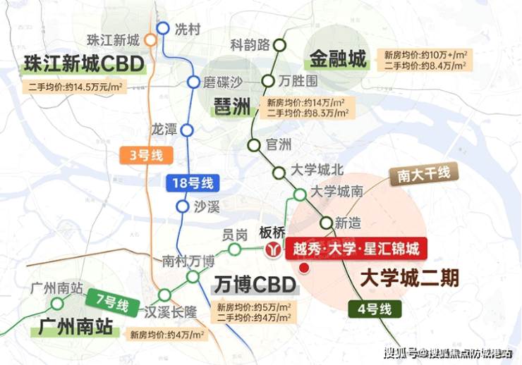 根据最新数据,2025年10月番禺区新房成交均价为45886元/㎡,环比持平,但细分板块中,大学城板块以57536元/㎡领跑,新造板块均价34425元/㎡,在番禺区新房均价逼近4.6万元/㎡的背景下,越秀大学星汇锦城以250万总价、省级名校配套、主城通勤圈,成为预算有限但追求品质生活的刚需群体的优选。