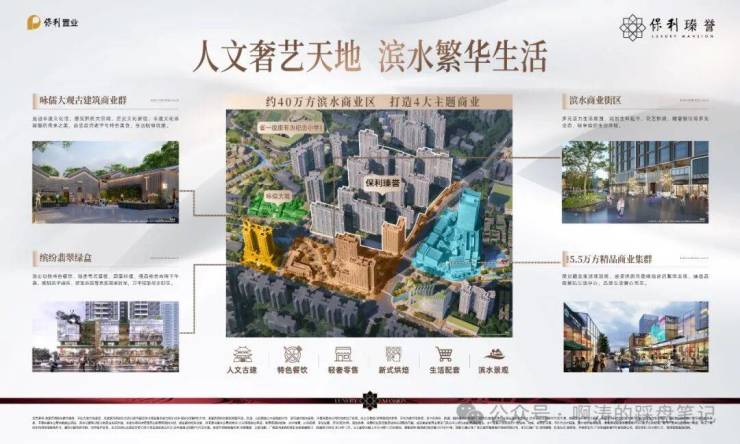 保利作为花地湾片区连片开发最重要的城市运营商,打造约120万方超配大城,涵盖了高端住宅、酒店、滨水商业街区、公寓、文化等多为复合业态,实现真正意义上的超配大城。