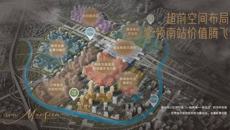 项目位于广州南站核心区,总用地约25.1万㎡,总建面86万㎡,总投资超200亿,汇聚高端住宅、星级酒店、甲级写字楼、顶级商场及服务式公寓,是典型的TOD复合型地标。广州南站作为粤港澳大湾区的重要门户枢纽,年客流量高达1.88亿人次,辐射全国及东南亚十余国,区域潜力巨大。