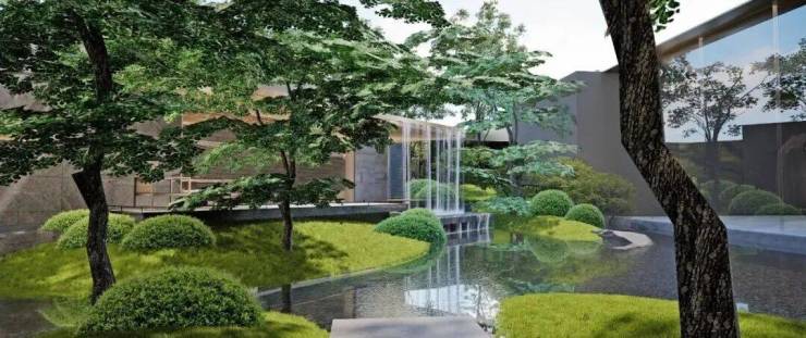 攫取岭南园林之基调,追溯人文生活本源,以现代造园功法,解构山水图景,打造“林起、穿林、林间、远林”四大主题景观,献呈可赏,可游,可居的桃源谧境。