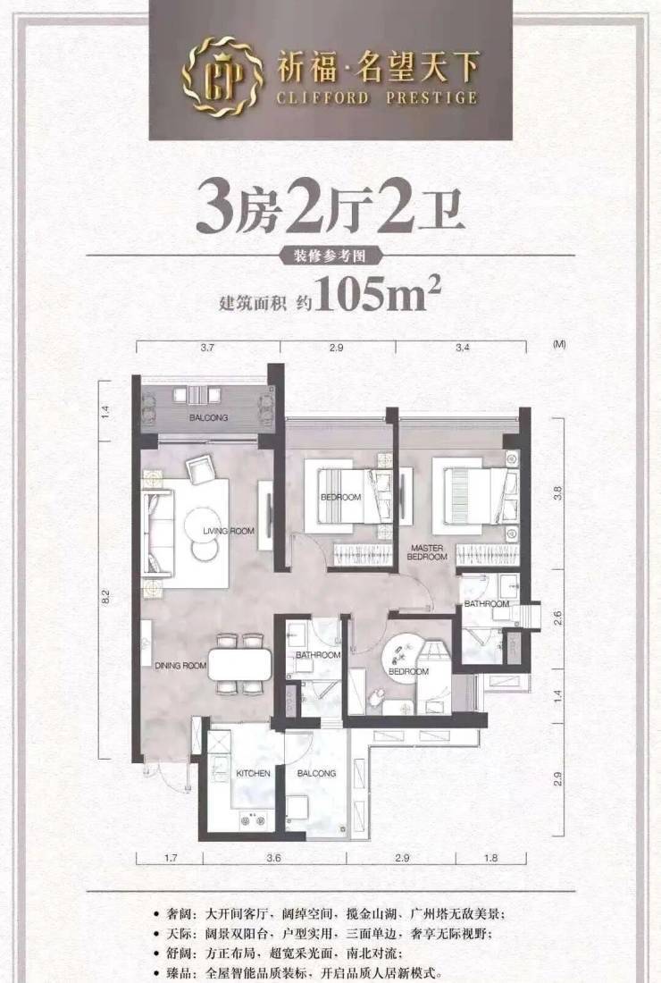 祈福名望天下在售 78-221㎡两到四房户型,户户南北对流,三面单边,户户双阳台,尤其适合改善型买家。