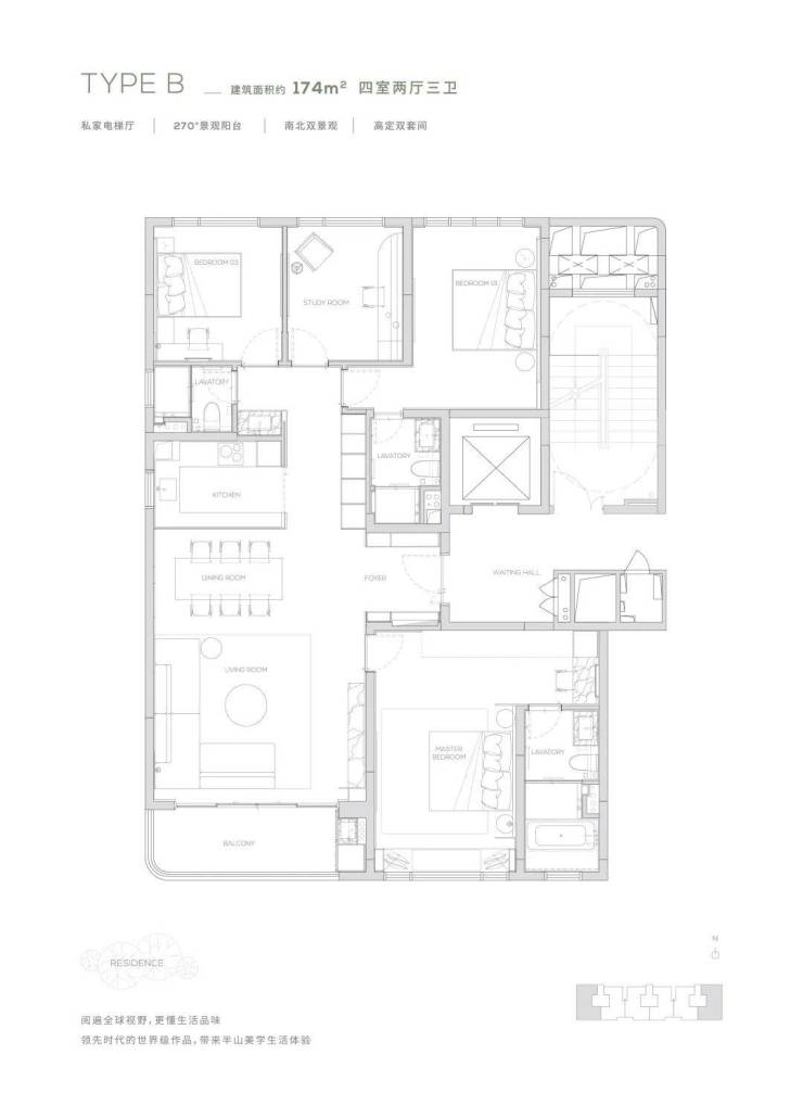 观景双阳台-高定双套间-私家电梯厅-双洄游动线
