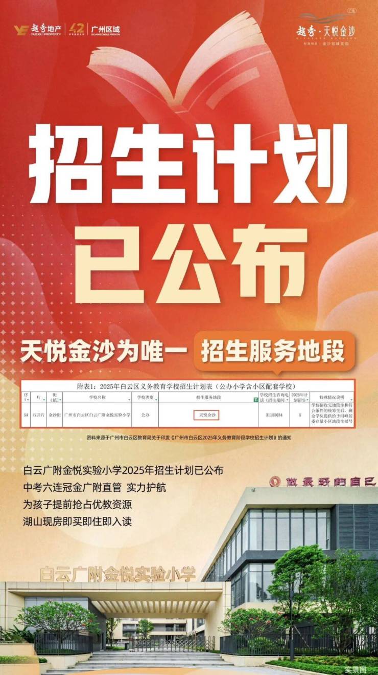 学校:18班幼儿园(预计今年9月开学)+30班白云广附金悦实验小学(已开学)