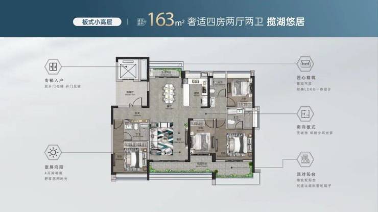🏠高层建面约125㎡ 270度转角湖山四房