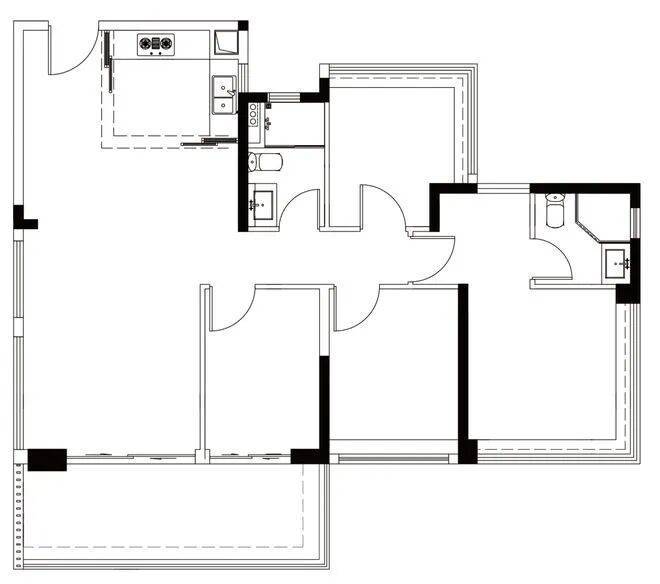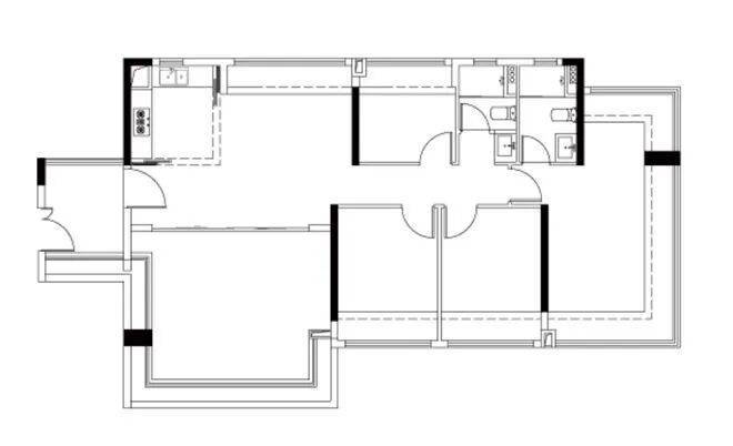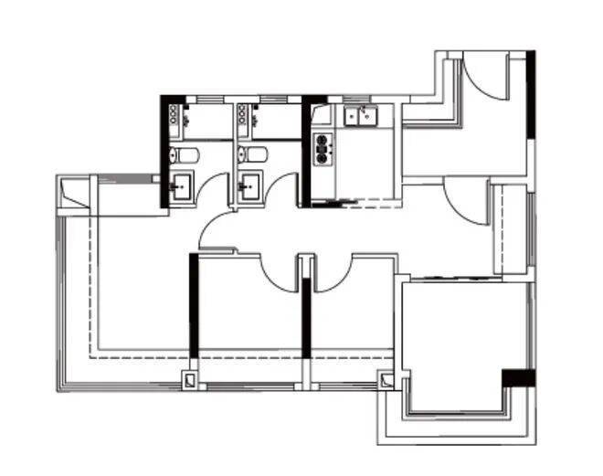 约104㎡ 4空间2卫:6.1米大阳台,四开间朝南,空间利用率高。