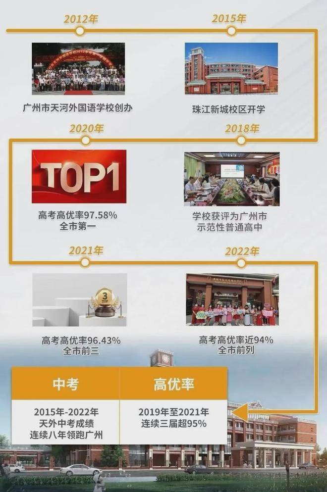 广州天河外国语学校自2012年4月创办以来, 学校迅速成长为广州优质教育品牌;同时享有北京大学大学先修课程实施学校、广州市教育工作先进集体等多项称号。