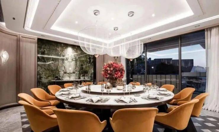 家宴厅设以可容纳16人的圆形餐桌,凝聚家庭温情,诠释圆满之寓意。