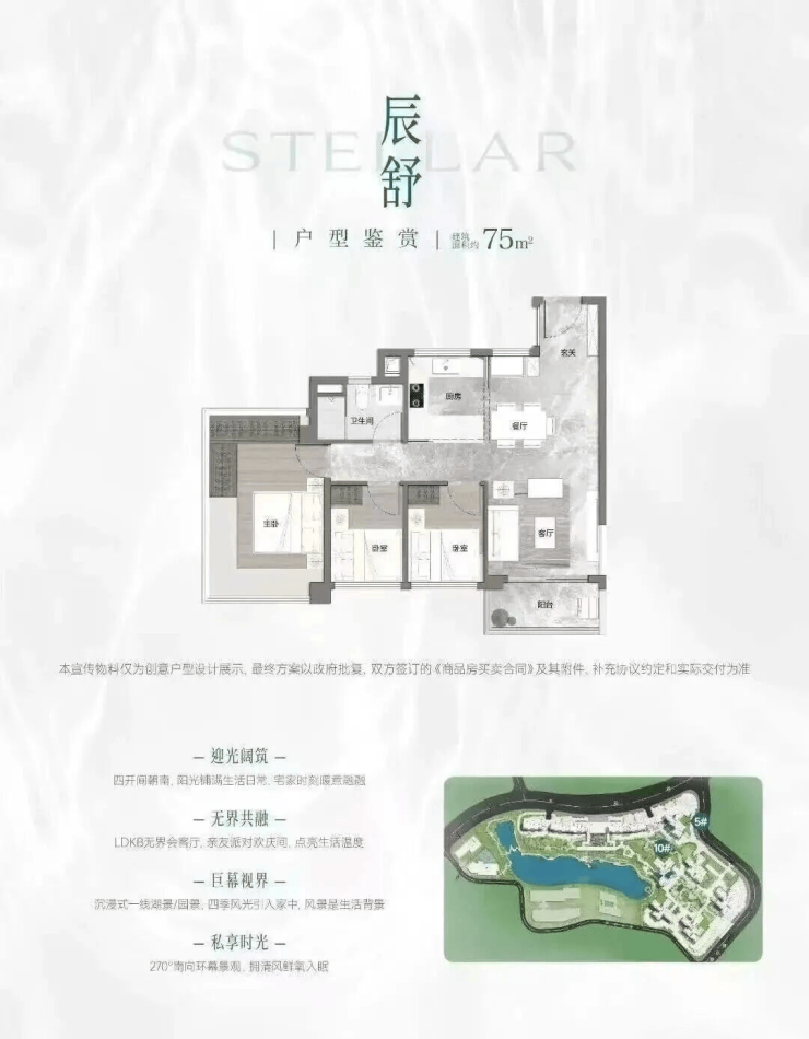 住宅全南 向布局,板楼可南向一线望映辰湖。