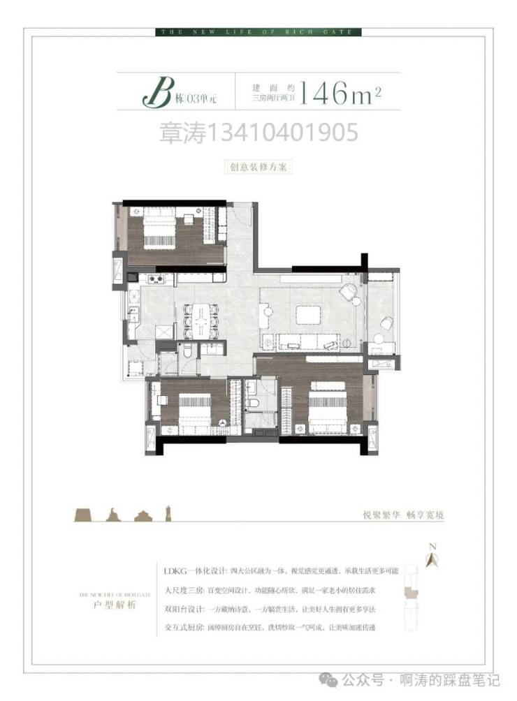 B栋03单元东西对流146㎡大厅大房三房户型: