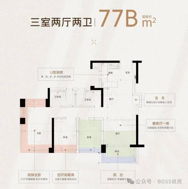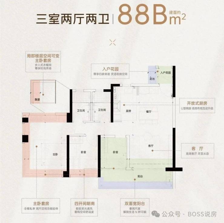 88㎡户型:7米超长阳台+12㎡餐厨一体化,满足家庭欢聚场景