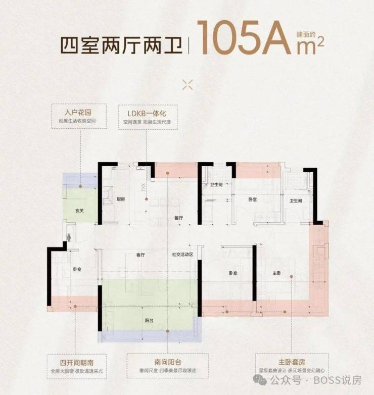 105㎡户型:南北对流大方厅,客厅面积可扩至23㎡,三代同堂无忧