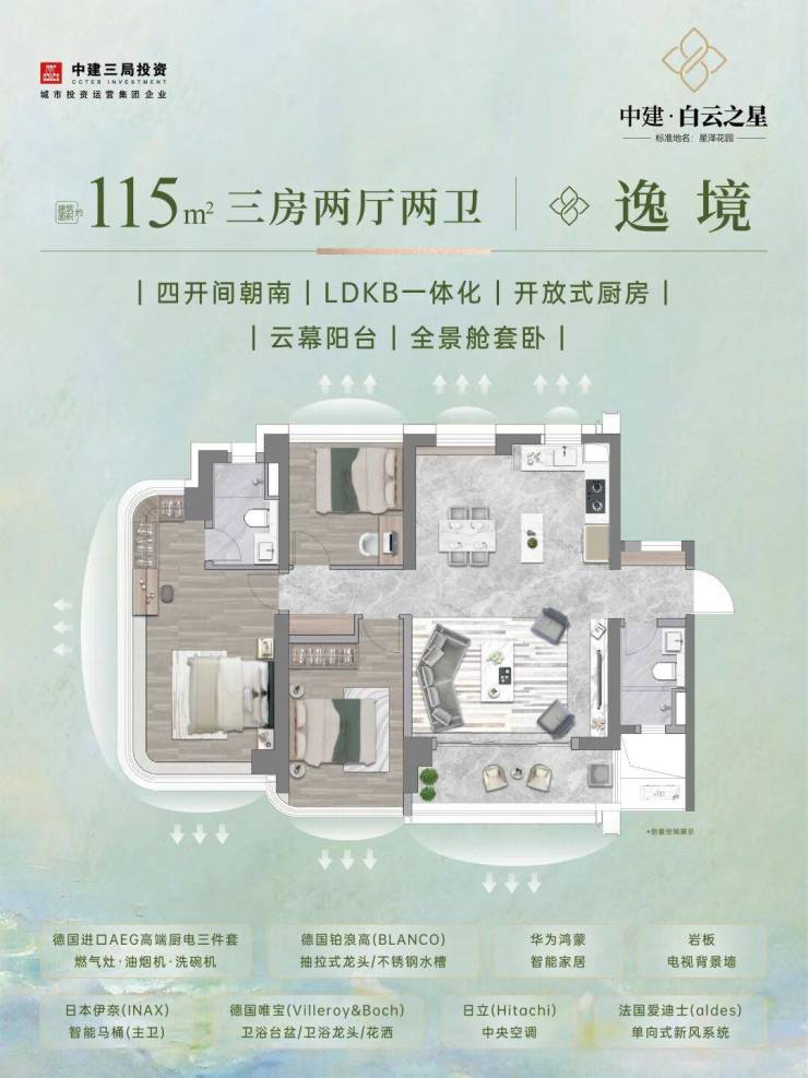 项目以“好房子”标准打造,获法国HQE与绿建三星双重认证,总建面约85万㎡,主推115-226㎡全改善户型,新规迭代设计使部分户型实用率超100%,搭配铝板玻璃光幕与270°环幕视野,精装选用AEG、唯宝等德系高端品牌,融入华为鸿蒙智家系统,社区打造立体度假式园林与四大主题公园,居住质感拉满。