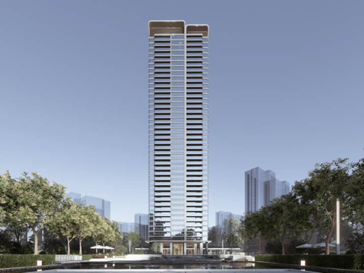 微弧流线设计,区别于多数豪宅的横平竖直线条,配合无柱转角设计,形成曲面屏式光幕立面。