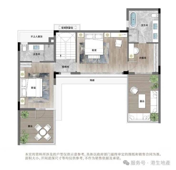 | 星空露台 | 南北雙向露臺與臥房相連,自成一方私密空間