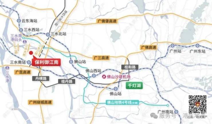 1高鐵:三水南站距離專案南門約2公里,1站到廣州,聯通香港西九龍
