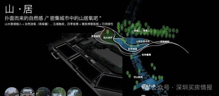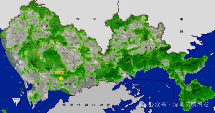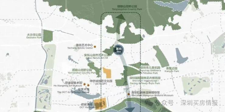 中心区域:深圳山海城中轴,左手香蜜湖、右手华侨城,六大总部基地环伺