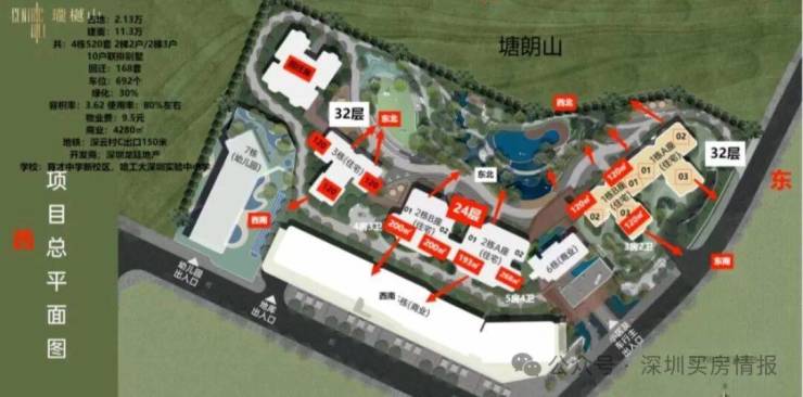 项目地址位于深圳市南山区桃源北环大道北侧塘朗山南麓,邻近深云地铁站。项目大体被山体包裹,西侧和南侧分别临近南坪快速路、北环大道两条城市快速路,其东侧还将建设侨城东路北沿线(建设中),所处片区相对割裂存在。
