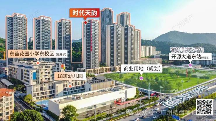 ③ 黄埔最好的学校: •全龄教育,18班幼儿园,30班省级名校——东荟花园小学(已开学) •时代天韵所属的萝岗街道对口广州重点中学——苏元中学、科学城中学、铁英中学、省教育研究院黄埔实验学校(初中部)、北京师范大学广州实验学校(初中部)等