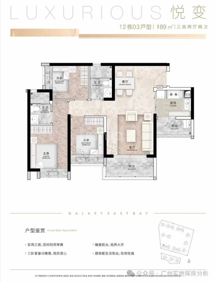 产品:87-90平方的小三房,106-112平方的大三房,128-142平方四房,180-207平方豪宅。