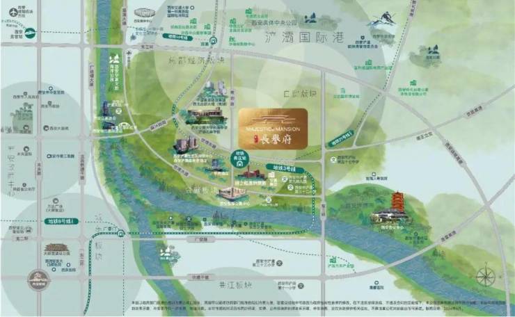紧临浐灞湿地公园、广运潭公园、桃花潭公园、世博园、滋水公园五大公园;