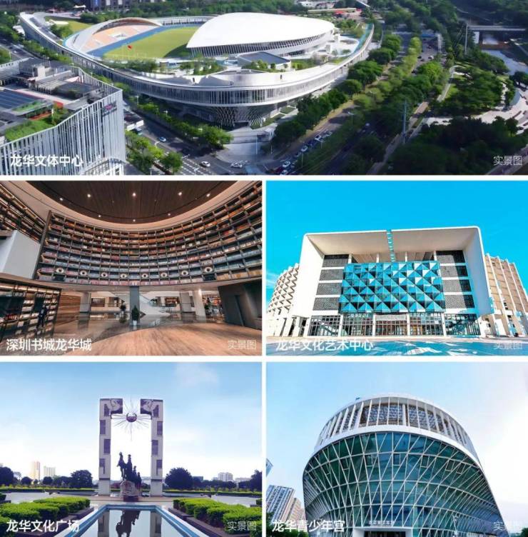 龙华文体中心、青少年宫、深圳书城龙华城、龙华文化广场、龙华文化艺术中心,5大城市级精粹文体尽聚一址,为菁英人生臻赋一座非凡殿堂