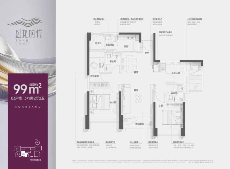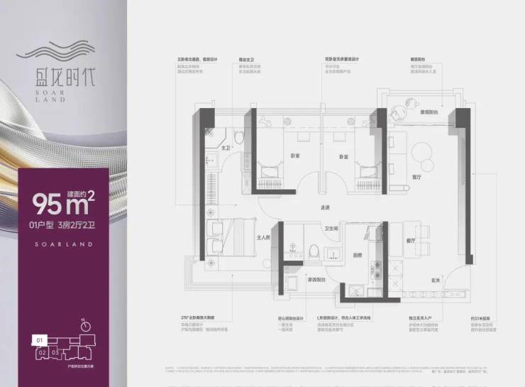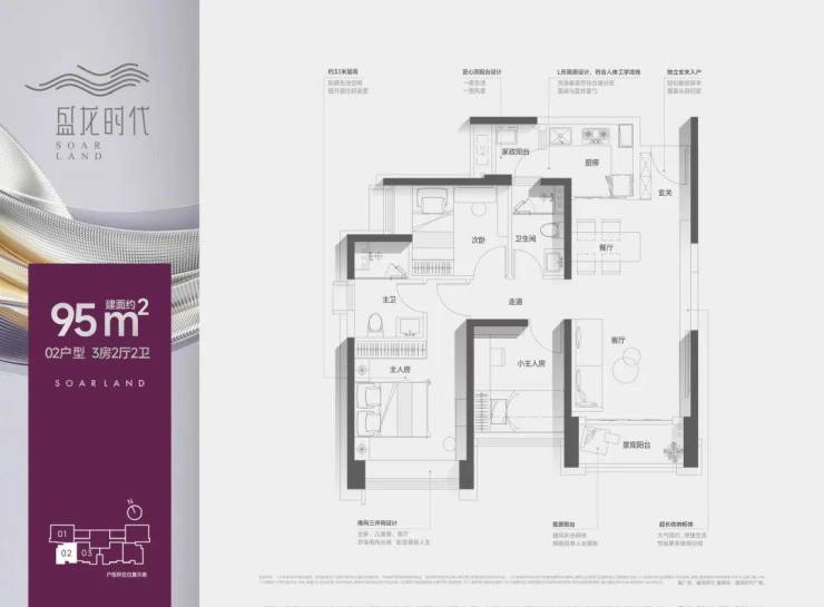 【户型面积】约99㎡3+1房2卫/95㎡3房2卫