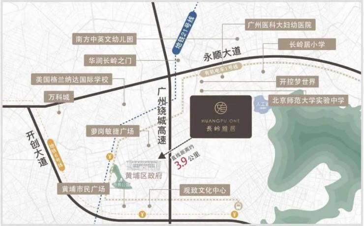 长岭雅居是由知识城集团打造的黄埔高端改善项目,位于黄埔区府后花园旁的长岭居板块,距离黄埔区府直线距离仅3.9公里(百度测距)。