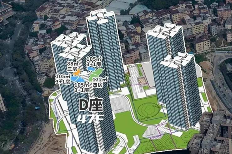 首推D座,总层高47层,3梯6户的设计,2026年底收楼