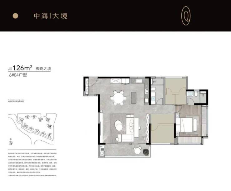 6栋04约126㎡户型,三开间朝南+南北双面采光充分满足家庭成员日常生活需求。