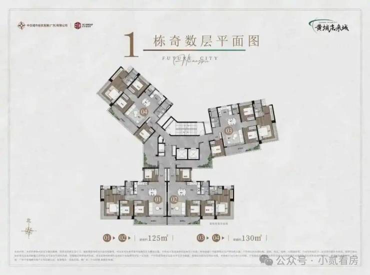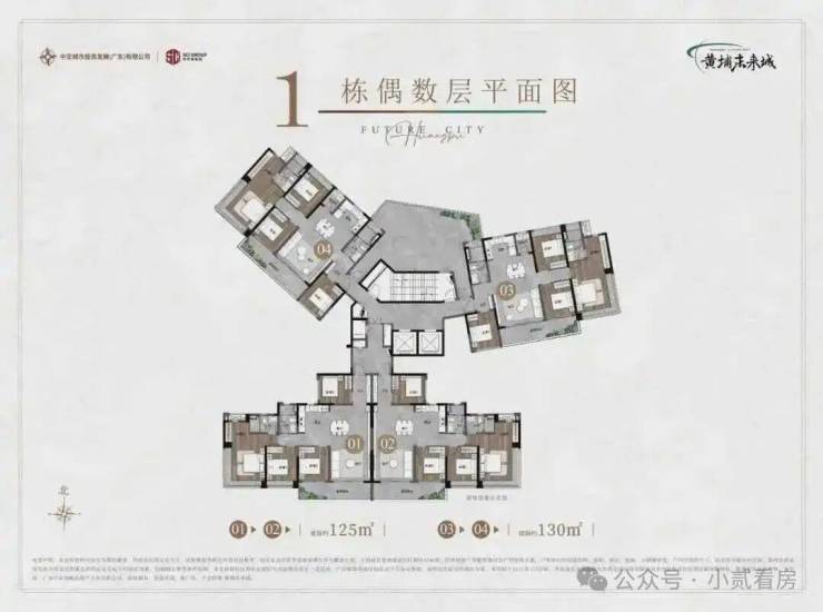 1-3栋,是高层住宅,主推建面约120-125㎡、约132-135㎡产品;