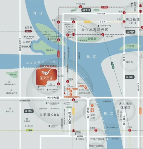 综上所述,星河江缦占据白鹅潭CBD核心区位,江景、交通、教育、医疗配套完善