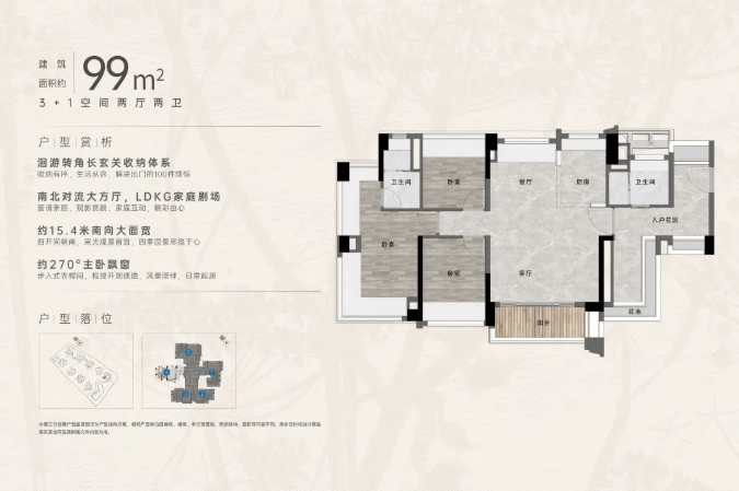 3⃣️建面约99㎡ 3+1空间(高层升级建面约108㎡)