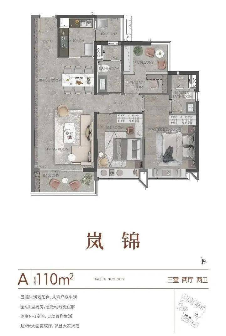 珠光·海珠新城推出了一系列高实用率户型,覆盖110㎡-230㎡的改善型住宅,产品设计讲究空间利用率,部分户型更享一线江景+公园景观。