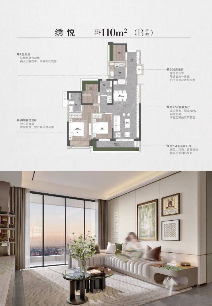 【在售面积】约110-220㎡南向一线揽江瞰湖大平层