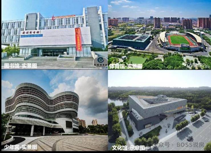 三馆一宫:黄埔图书馆、体育馆、文化馆(在建中)与少年宫环绕