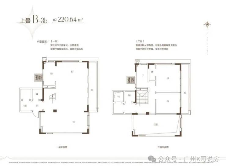 建筑面积约220-265㎡,大尺度大阳台,双层大挑空设计;