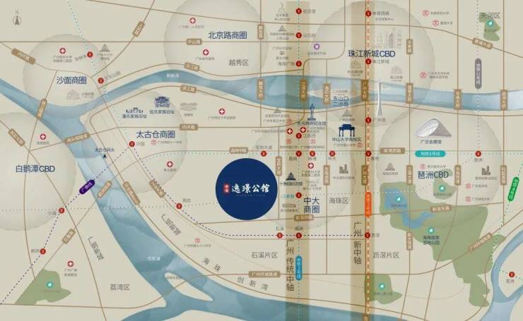 商圈:自带约1.1万㎡逸璟广场,周边约2km内享万科里、燕汇广场、乐峰广场、富力海珠城等,中大商圈、江南西商圈、江泰路商圈环绕。