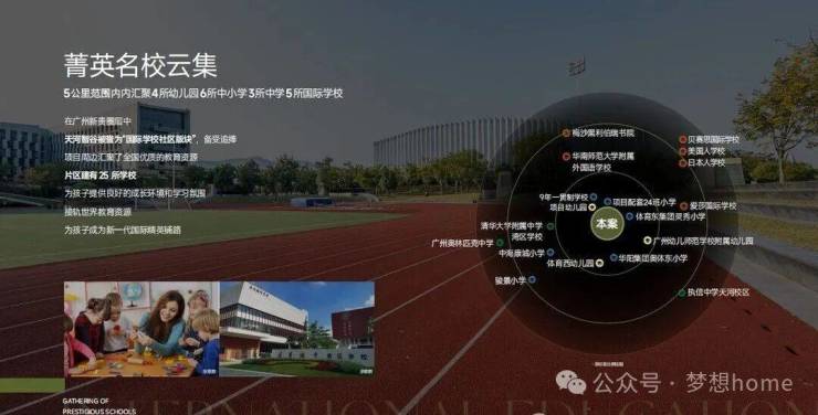 项目自配15班幼儿园和24班小学,其中24班小学引进广州天河外国语教育集团合作办学