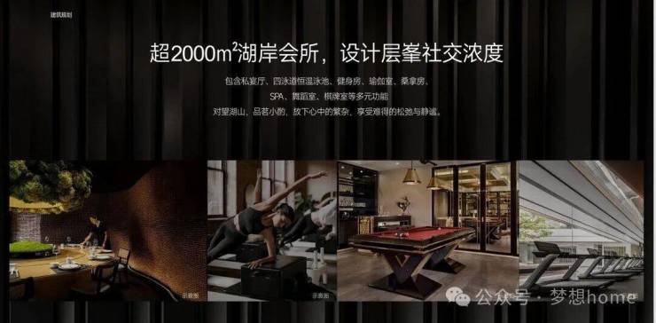 内部还奢侈地打造了一个约2000方的湖岸会所,背靠住区、望湖而筑,这样的规划非常巧妙,比如有四标准泳道的恒温泳池,还特别定制了极富层次的儿童池、按摩池