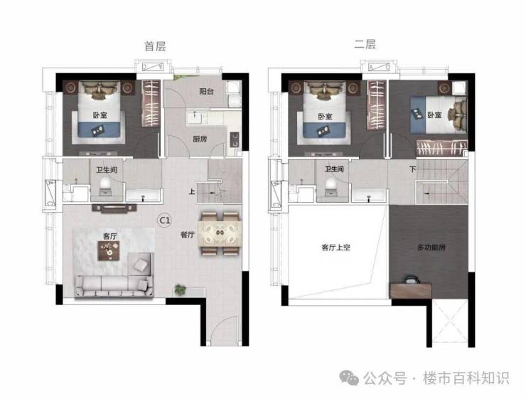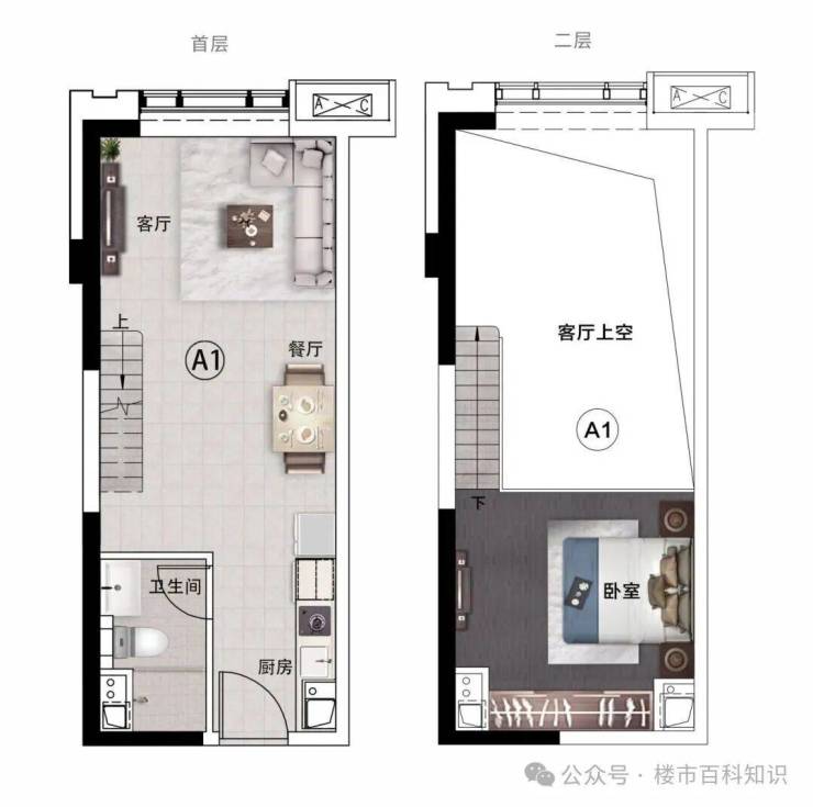 2. 百变loft产品 | 49.72㎡一室二厅一卫4.5米层高 挑空客厅 舒适度已然拉满餐客厨一体化设计 放大生活质感整层卧室设计 奢享私密上下之间 尽拥时光百变