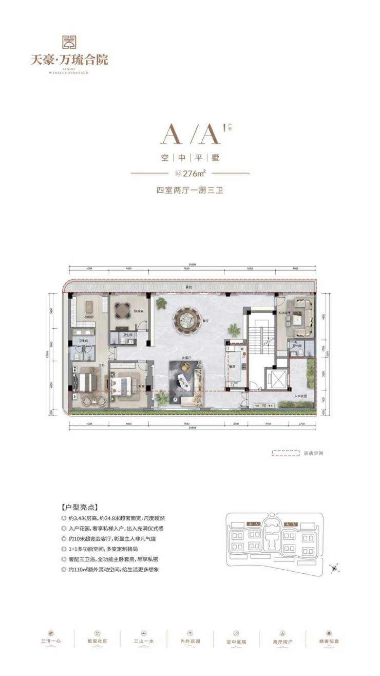 • 超阔面宽:约24.8米超奢面宽,约10米超宽会客厅