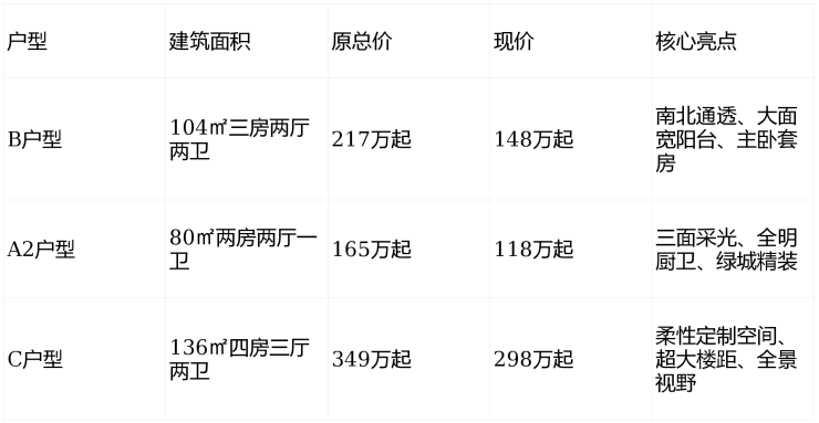 • 就连此前稀缺的136㎡四房,也从349万降至298万起,大户型买家同样有惊喜。