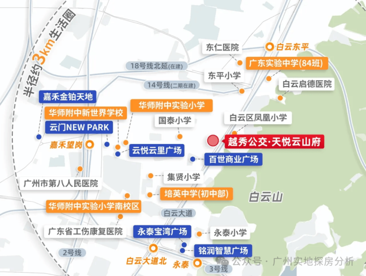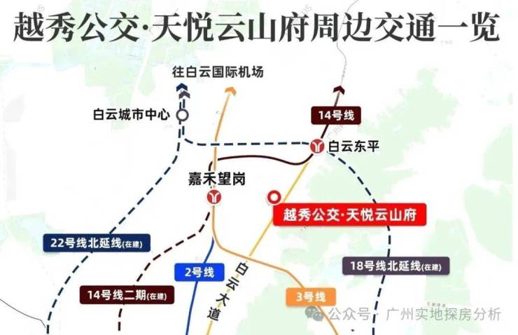 项目距离地铁14号线白云东平站约1.7公里,还有在建的地铁18号线北延段,3号线白云大道北站约2.1公里。