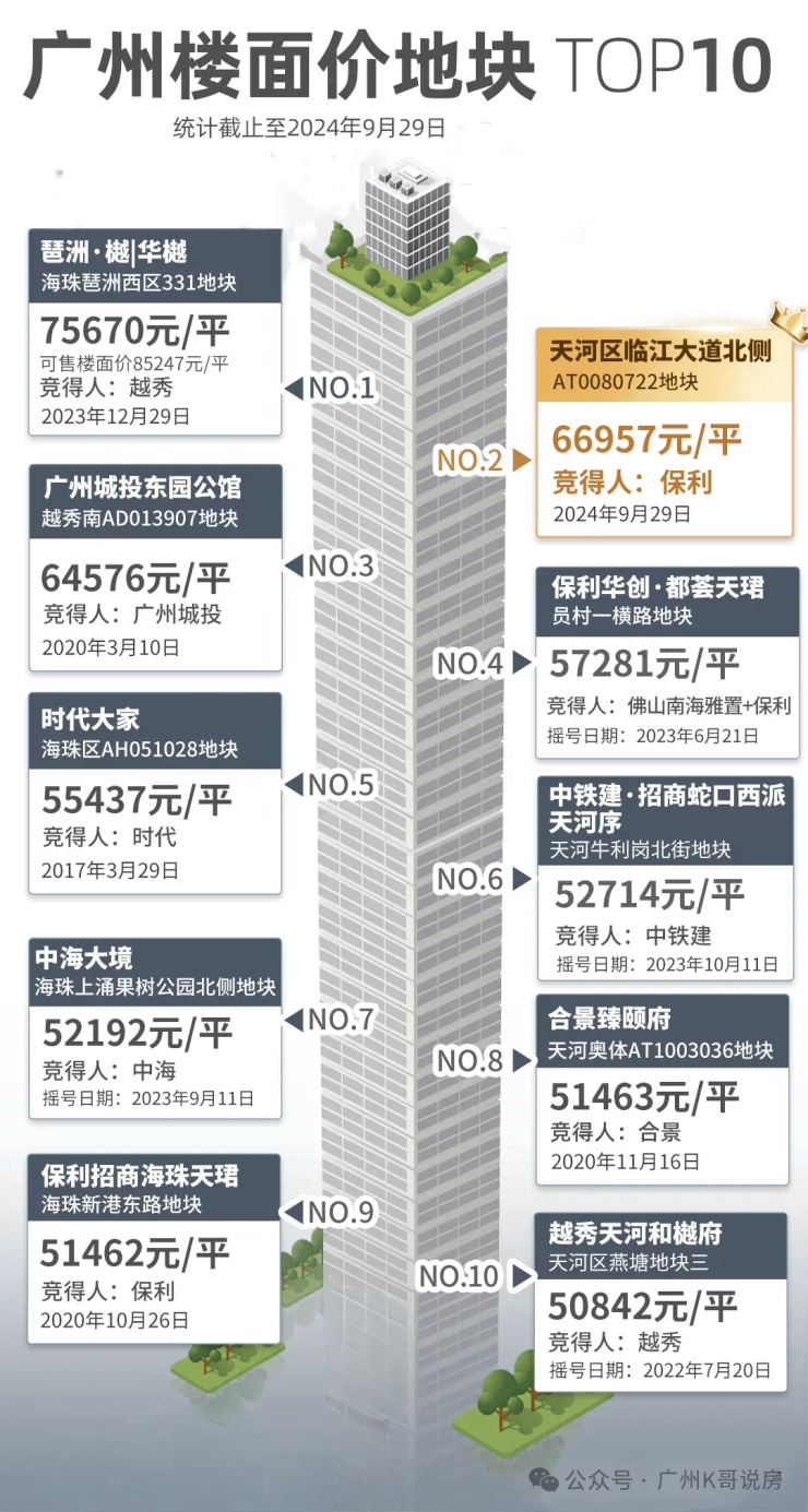 继地价榜第四的员村一横路地块(现保利华创都荟天珺)后,保利在珠江新城再下一城,顺手创造了天河地王。跻身广州楼面价TOP2,仅次于琶洲地王。