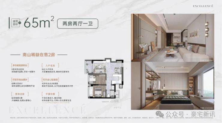 卓越深度研究深圳人居痛点,为品质生活需求菁英量身打造高品质舒适住区,建面约65-81㎡2-3房新规臻品,传承奕式精装品质,智能化系统,符合精英审美且实现生活进阶的颜值好房。