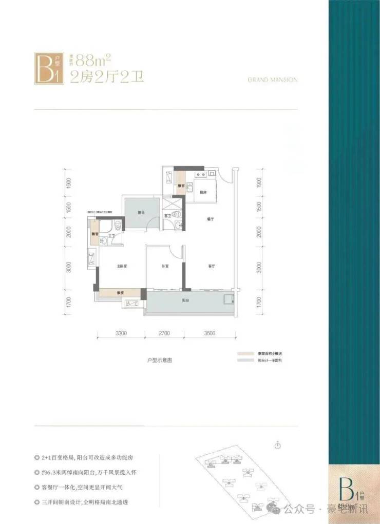 户型优势:赠送约12方,全南户型,拥有6.3米超宽阳台