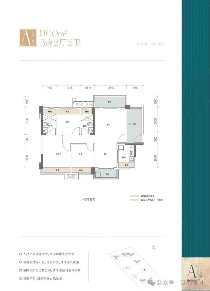 户型优势:赠送约17方,双阳台南北对流,多功能入户花园,可做5.8米开间大横厅