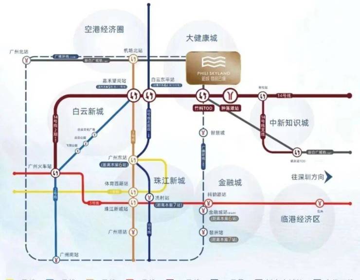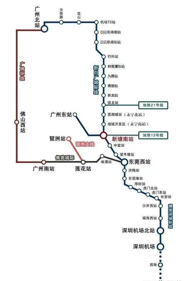 新白广城轨(在建中)1站白云机场,南向通达东莞和深圳。
