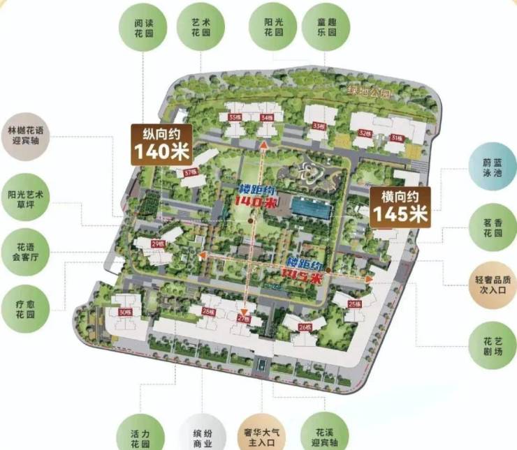 约10万㎡社区绿色园林,超百米阳光楼距,超阔央景园林一览无遗约5.2万㎡央景园林、内拥近600㎡蔚蓝泳池、超2500㎡全龄游乐园、六大主题花园等生活领地; 项目周边3公园环绕,其中北面规划建设奥体绿廊公园,临近天河儿童公园、岐山公园两大市政公园;园林整体以两轴、三环、四大剧场、六大花园,形成别具一格的现代美学艺境;内有定制级艺术草坪、户外会客厅、蔚蓝泳池、全龄游乐园等配建;